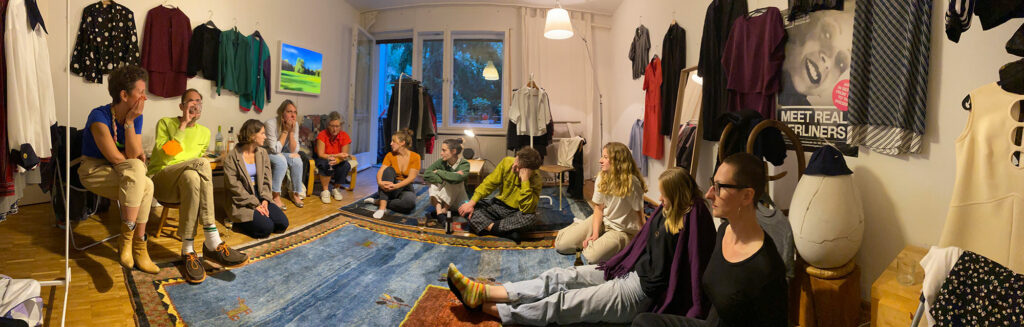 Zu schön und mir zu wichtig zum Weggeben – das sind die Kleider, Blusen, Jacken, Röcke meiner Mutter, sie haben Stil und sie sind poppig. Ich bin den Stücken nah und doch sind sie mir fremd. Deshalb brauchen diese Kleidungsstücke Frauen, die mit ihnen spielen, sie tragen und leichtfüßig mit und in ihnen weiter gehen. So ist dieses Projekt geboren. Die Kleider haben Geschichte, die meiner Mutter, für sie soll es keine Sackgasse des Nichtgetragenwerdens geben und kein Verramschen im Secondhandladen. Ich möchte die Stücke inszenieren und beleben, die Trägerinnen spinnen die Geschichten fort. Für die Kleider ist das nach Ewigkeiten im Schrank ein time warp. Die Frauen dokumentieren das neue Leben der Kleidungsstücke durch ein Foto, oder ein anderes Zeichen, einen Gedanken, ein Gedicht, ein Lied. Daraus entsteht eine Ausstellung, eine Modenschau, ein Austausch. Die Biografien verweben sich.
